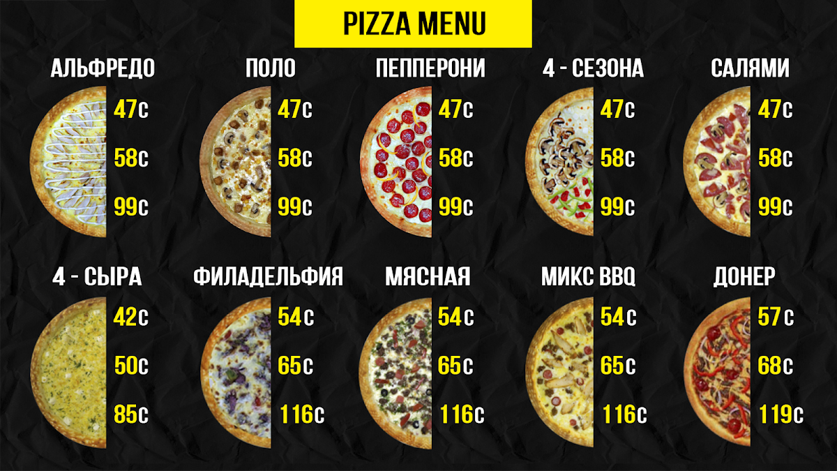 Пиццы (PIZZA MENU)